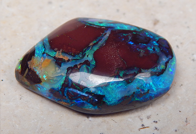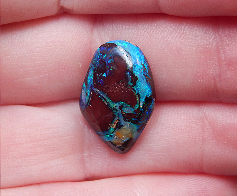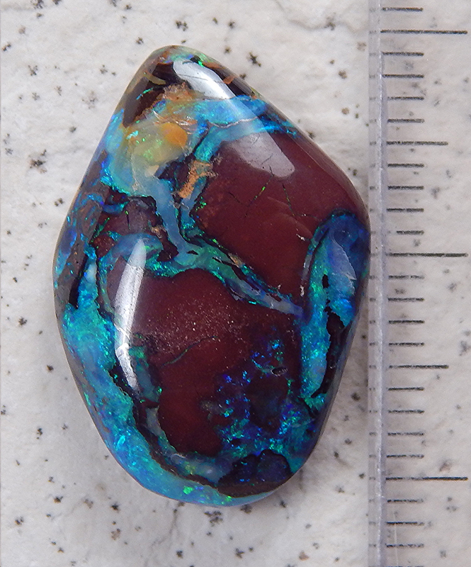 Koroit-Nut -Fundort: Koroit -Gewicht: 12,59 ct. -Größe: 20 x 14 x 5,2 mm -Farben: grün & blau -Bitte beachten Sie, dass Unebenheiten, Einschlüsse, Flecken oder Risse,Sprünge o.ä. natürlich sind und keinen Mangel darstellen.Video anklicken