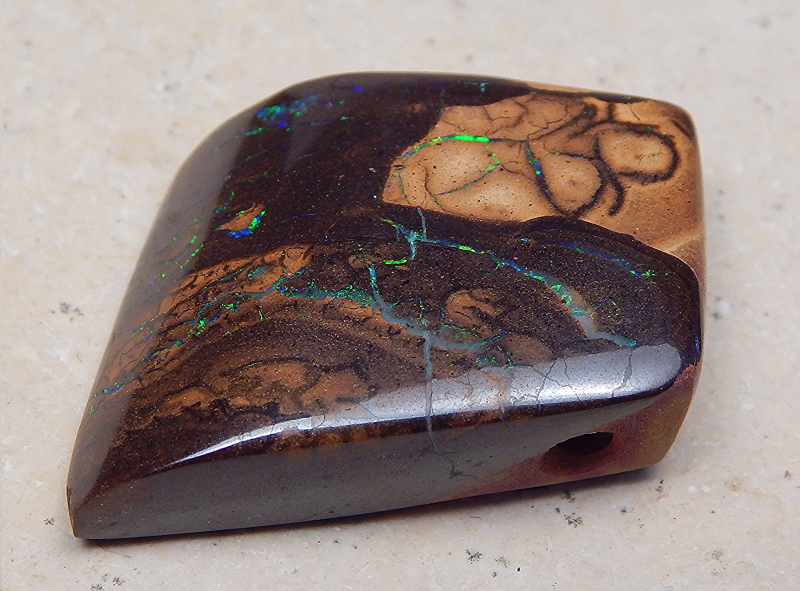 Opal mit 2,5 mm Bohrung z.B. für Edelstahlseil mit Bajonett-Verschluß -