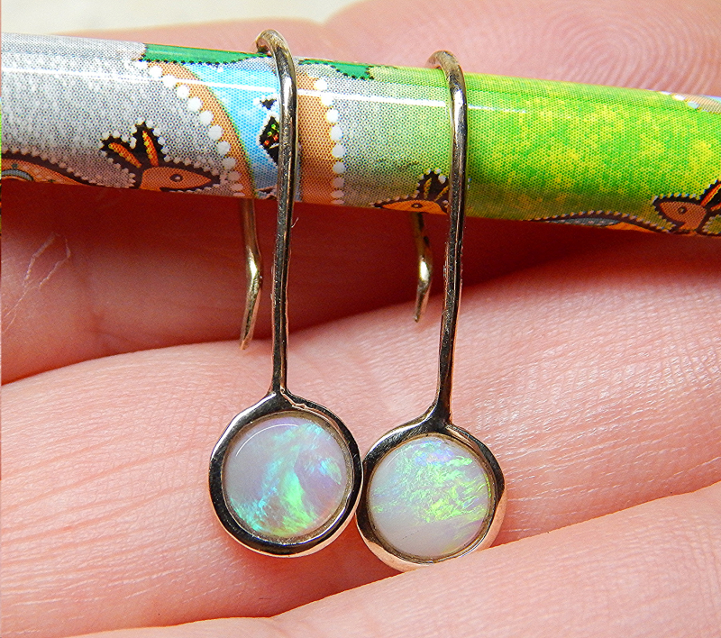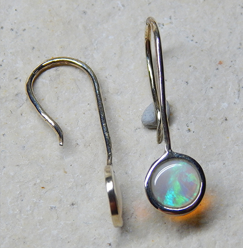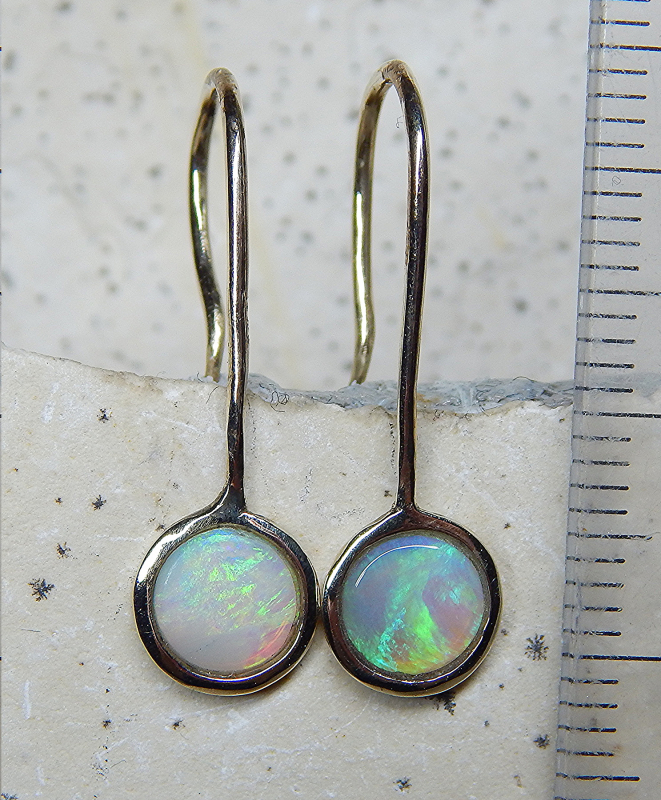 585 GG Ohrhänger mit Kristallopal - Fundort: Lightning Ridge - Opal: 6 x 6 x 1,4 mm - Ohrhänger: 27 x 7,5 mm - Gewicht: 1,08 gr. - Farben: grün & blau - Bitte beachten Sie, dass Unebenheiten, Einschlüsse, Flecken oder Risse, Sprünge o.ä. natürlich sind und keinen Mangel darstellen. Video anklicken