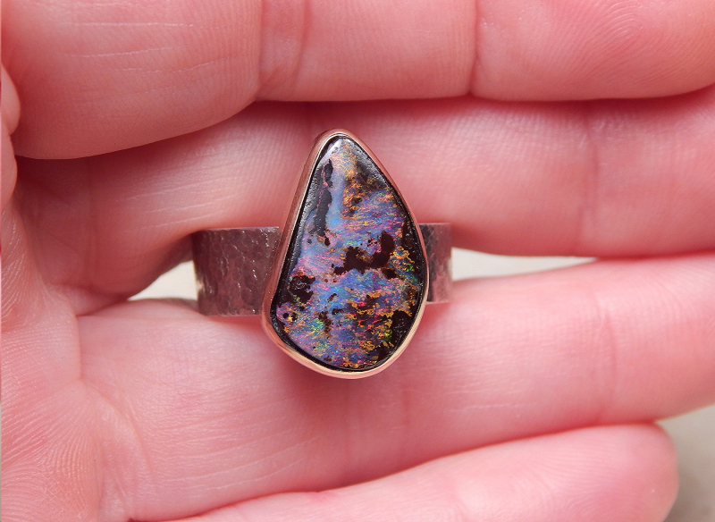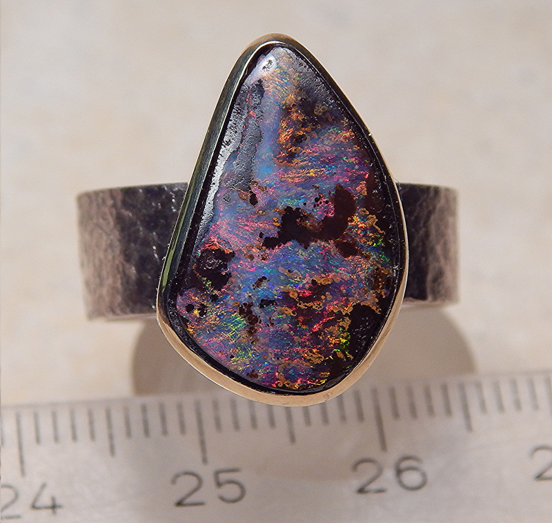 Designer Ring in 925 SS & 585 GG mit Boulderopal -