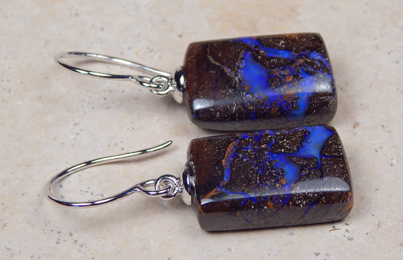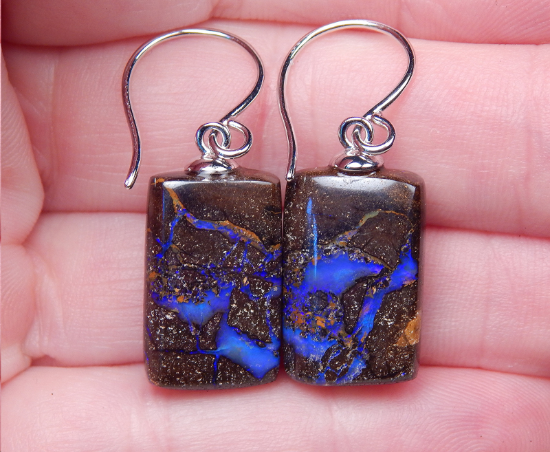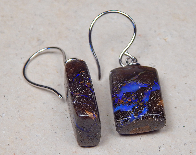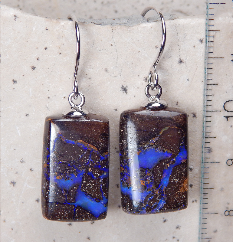925 SS Ohrhänger mit Boulderopal - 925 Sterling Silber rhodiniert - Fundort: Quilpie - Opal: 19 x 12 x 6 mm -- Ohrhänger: 36 x 12 mm - Gewicht: 8,60 gr. - Farben: blau & violett - Bitte beachten Sie, dass Unebenheiten, Einschlüsse, Flecken oder Risse, Sprünge o.ä. natürlich sind und keinen Mangel darstellen. Video anklicken